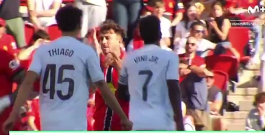 本轮西甲,马略卡2-1绝杀皇马。《马卡报》援引了转播方Movistar+对比赛的直击画面,发现了一个细节:替补登场的维尼修斯与马略卡边后卫马菲奥之间依旧是火药味满满。
