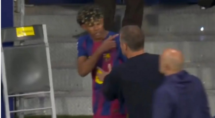 尽管巴萨最终取胜,但亚马尔情绪不佳,他并没有庆祝莱万的制胜进球,这位小将带着怒气离场,而库巴西试图安抚亚马尔。